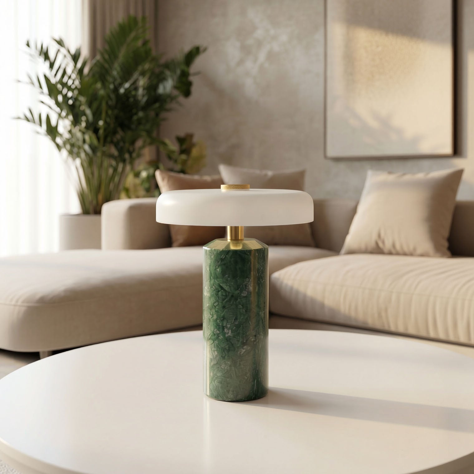 Built from real marble and finished with a smooth glass top, creating a timeless cordless lighting piece.